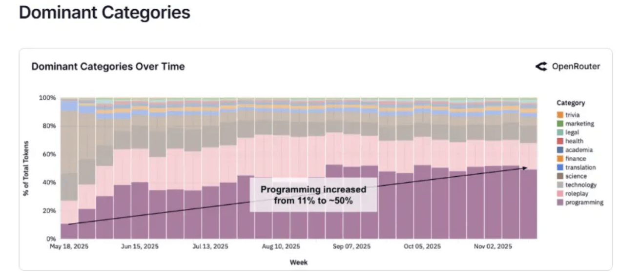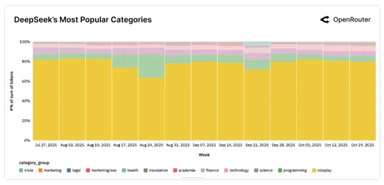OpenRouter阐发按照总利用量取单元成本绘制LLM使用场景图,目前,于2025年8月推出了gpt-oss系列(120b和20b变体)。正在Hugging Face平台上,阿里巴巴的Qwen曾经超越Meta的L?