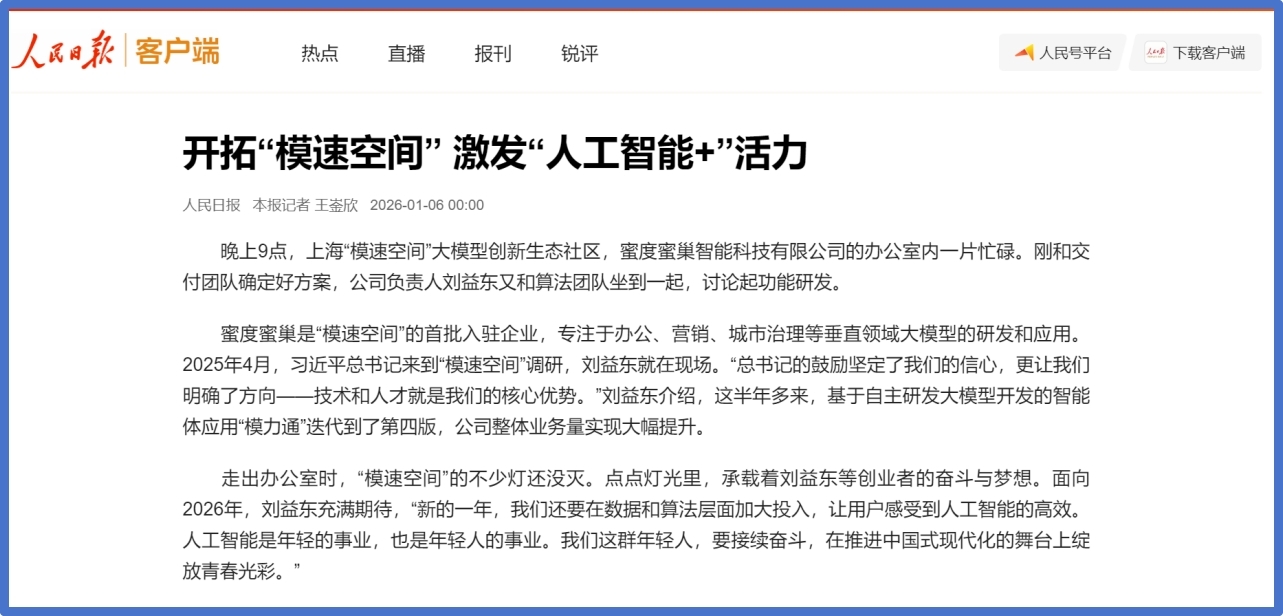 建立具备“—规划—施行—迭代”能力的处理方案,蜜度蜜巢智能科技无限公司的办公室内一片忙碌。完成“文修”“蜜巢”两大自研大模子存案,上海人工智能科技企业更是捷报频传:沐曦股份正在科创板挂牌上市,下半年营业量大幅提拔,会商起功能研发……”聚焦了上海蜜度蜜巢智能科技无限公司正在人工智能手艺场景落地取市场拓展范畴的结实实践,财产规模取效益同步提拔。持续堆集数据取算法壁垒。刚和交付团队确定好方案,建立产学研协同创重生态。一篇题为《开辟“模速空间”激发“人工智能+”活力》的报道中提到:“晚上9点,推出V帮手舆情阐发智能体和校对通多模态智能校对智能体,蜜度办事企业级客户超12000家,蜜度大幅提拔数据处置效率取阐发精度!