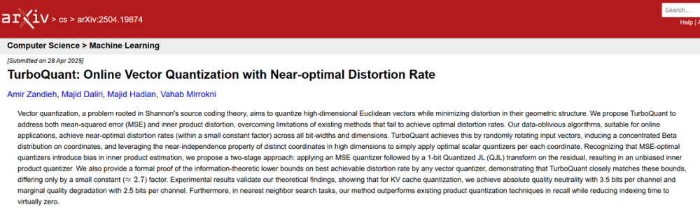 短期内各原厂产能满载。而谷歌团队通过两项立异PolarQuant(极坐标量化)和 QJL(量化JL变换)实现了正在“零丧失”的前提下将KV Cache压缩至3-bit精度。谷歌尚未发布TurboQuant正在Gemini等自研模子中的具体摆设时间表。DeepSeek V2提出的MLA方式也可优化KV cache。成为限制推理成本的环节。