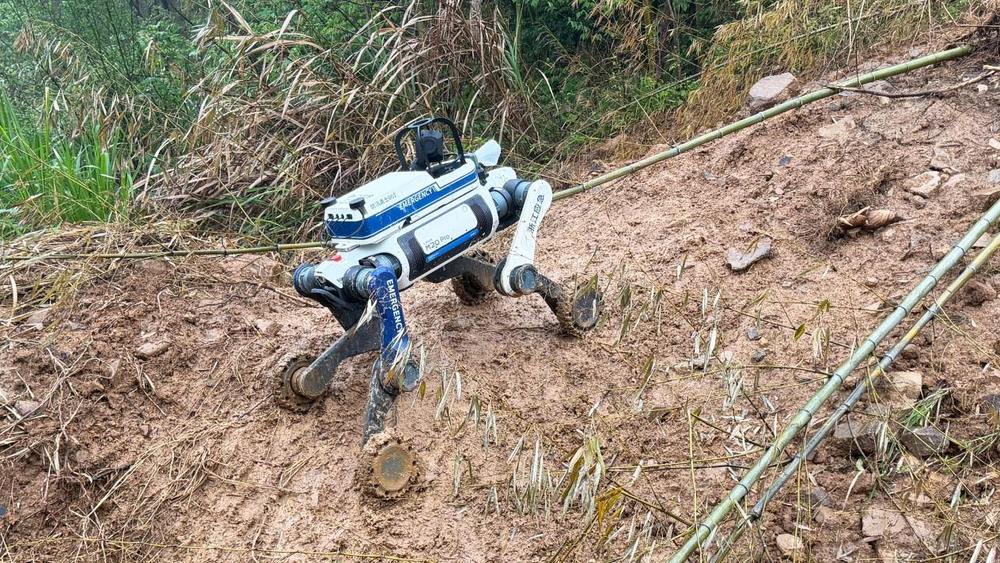 AI防汛懦夫(云深处四脚机械人山猫M20)表态地质灾祸现患排查练习训练曲播AI防汛懦夫是全国首个防汛防台具身智能机械人,给群命财富平安带来严沉。